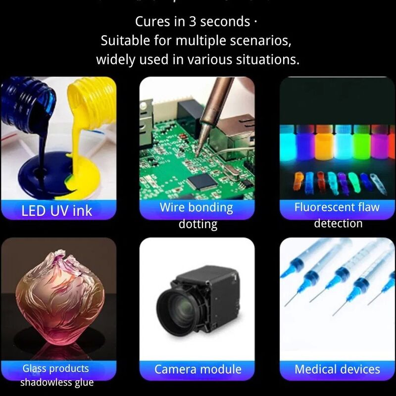 - Wiele długości fal: 365NM (elektronika), 395NM (łączenie akrylu), 405NM (żywica do druku 3D)